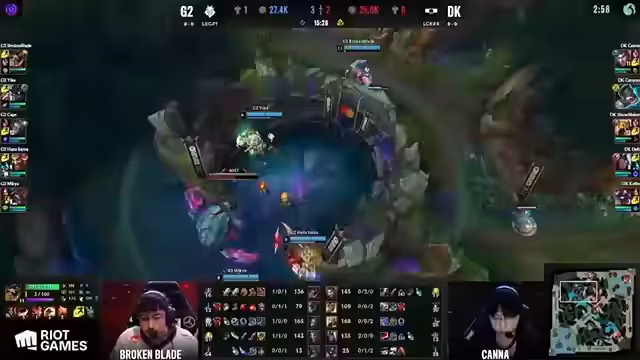 05:13:19G2 Esports durchbricht in der entscheidenden Phase des Spiels die Blockade von D-Plus und nutzt einen strategisch klugen Elder-Fight, um die Partie zu ihren Gunsten zu entscheiden. Durch ausgezeichnetes Positionsspiel, koordiniertes Vorgehen und das geschickte Nutzen der Champion-Fähigkeiten schaffen sie es, den Elder-Drachen zu sichern und damit die Basis für den Sieg zu schaffen.
