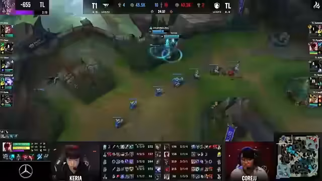 00:57:23Die erste Phase des Spiels wird durch die intensive lane-basierte Auseinandersetzung zwischen T1 und Team Liquid geprägt. Besonders auffällig ist die Präsenz von Kumayushi als Haupt-Carry von T1, der durch solides Positionieren entscheidende Kills verhindert. Gleichzeitig zeigt sich die Stärke von Jace als Lane-Bully, der jedoch Teamkohäsion benötigt, um effektiv zu sein. Das Game bleibt ausgeglichen, mit kleineren Vorteilen auf beiden Seiten, wobei T1 durch gute Turretpunkte führt.