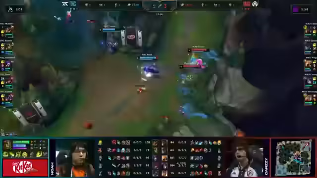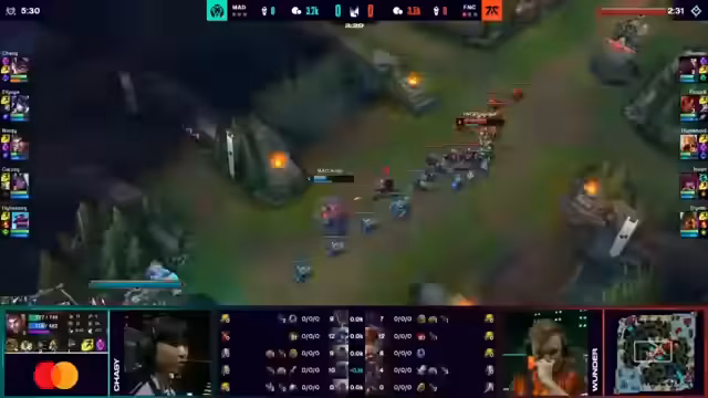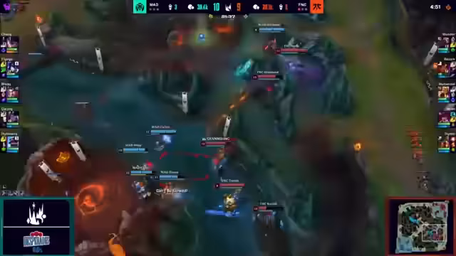 03:31:27Mad Lions steht vor der Aufgabe, Fnatic's Dominanz zu brechen, nachdem Fnatic in den ersten beiden Spielen eine starke Leistung gezeigt hat. Besonders Razork muss unterbunden werden, nachdem er zuletzt mit detaillierten, fantastischen Plays überzeugt hat. Für Mad Lions gilt es nun, drei Spiele in Folge zu gewinnen, um Fnatic noch am Finaleinzug zu hindern. Sie haben jedoch Erfahrung mit solchen Situationen, da sie im Spring-Split gegen Team BDS mit 0-2 zurücklagen, sich aber erholten und den Titel gewannen. Nieski muss eine bessere Leistung zeigen, um zu beweisen, dass seine Performance nicht vom Champion abhängt. Razork sicherte sich Vorteile für Humanoid, indem er Mad in die eigene Topside zurückdrängte und CS-Vorteile erzielte, was seine egoistische Spielweise unterstreicht. Fnatic hat die ersten fünf Minuten gut überstanden und einen leichten Vorteil erlangt. Rezog hat einen soliden Level-Lead im Jungle und plant, mit Requiem Druck auf der gesamten Map auszuüben.