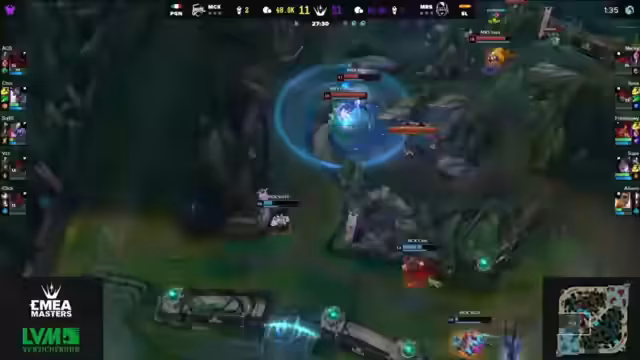 01:35:10Das zweite Spiel beginnt mit frühen Aktionen. Seaboy geht Mitte und forciert einen Flash. Alvarov-Bot muss ebenfalls flashen, um einem Bladecaller zu entgehen. Markie attackiert ACD. Es wird über die spanischsprachige Telekommunikationsfirma Movistar als Sponsor gesprochen. Klick opfert sich, um den Supporter wegzuschleudern. Das First Blood geht an Alvaro. Super sichert sich einen Kill, während Seaboy unter den Turm flasht. Isma kommt mit Mühe heraus und geht mit 13-1 in Führung. Es wird analysiert, dass Isma alles richtig gemacht hat, aber trotzdem gestorben ist, was auf einen Fehler im Vorfeld hindeutet. Frashkovi wird geneift, erhält aber Unterstützung von seinem Jungler. Der erste Drache erscheint bald auf der Karte. Movie Star Riders werden vom Movie Park gesponsert. Eine Diskussion über Leverkusen und Berlin entsteht. Seaboy sichert sich den Drake, opfert aber sein Leben. Wizz bestätigt, dass die Situation für Mako unangenehm ist. 610 kommt aus der Mitte und setzt den Buster Shot ein, um CC zu erzeugen. Flash Gobi kommt zur Hilfe. Der Schaden reicht jedoch nicht aus, um 610 zu töten.