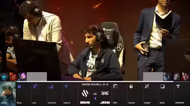 04:29:16BDS sorgt für Aufsehen und führt früh im Spiel, was überraschend ist angesichts der Favoritenrolle von JDG. BDS nimmt den direkten Weg gegen JDG und geht aggressiv vor. Es wird diskutiert, ob man Demacia wegen des Kataklysmus oder der Geryl ruft. Kanavi versucht, in die Top-Lane zu spielen, aber Adam weicht aus. BDS macht mehr Spaß als Mad Lions. JDG konzentriert sich zu sehr auf Adam, was BDS ausnutzen kann. Adam wird als der Eierschalen-Sollbruchstelle für JDG bezeichnet. BDS bekommt den First Herald und Kills, was zu einer Führung führt. Sie nehmen keine Umgehungsstraße, sondern fahren den direkten Weg gegen JDG. JDG wird als zu squishy angesehen. BDS spielt sehr aggressiv und führt mit knapp 1000 Gold. JDG versucht, zuzuschlagen, aber BDS verhindert, dass sie ins Rollen kommen. Die Angst besteht, wie Kaisa im späteren Spiel skaliert und wie der CC von JDG zum Problem wird.