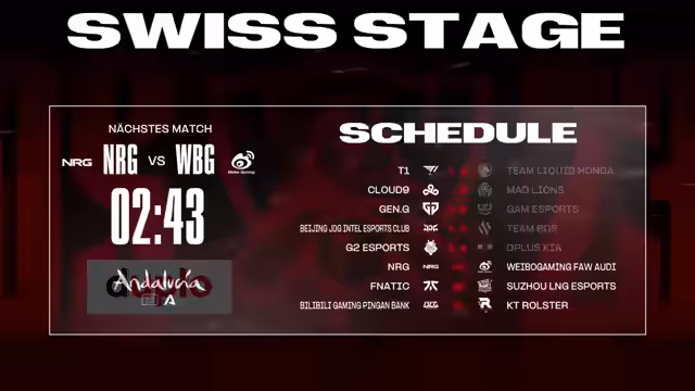 07:55:46Es wurde über das Star-Roster gesprochen, insbesondere über Spieler wie Tarsan, Gala und Scout aus der LPL. Trotz starker Gegner gibt es für europäische Teams in der Swiss Stage Wege, zunächst auf einfachere Gegner zu treffen. Fnatic befindet sich nun im 0-1er-Bracket, zusammen mit BDS und Mad Lions, während D-Plus als einziges koreanisches Team dort vertreten ist. Nach dem nächsten Spiel wird ein weiteres asiatisches Team hinzukommen. Es wurde die Möglichkeit diskutiert, dass europäische Teams sich gegenseitig eliminieren könnten, was in Best-of-One-Spielen besonders unangenehm wäre. Abschließend wurde humorvoll gefragt, wie man die Wörter 'Sahnehering' und 'Plusquamperfekt' in den Cast einbauen könnte, gefolgt von weiteren ungewöhnlichen Begriffen. Nach einer kurzen Pause folgt das letzte Spiel des Tages.