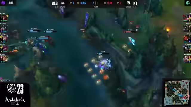 08:26:59Das Spiel zwischen BLG und KT Rolster begiant ruhig, mit beiden Teams, die nach Vorteilen suchten. KT Rolster zeigte eine aggressive Strategie mit Engages über den Jungler Kaz und Midlaner BDD, während BLG darauf bedacht war, durch guten Scaling und Positionierung im Spiel zu bleiben. Erste Kämpfe und Objivkämpfe wurden getauscht, wobei KT den ersten Drachen sichern konnte und BLG durch eine gute Defensive und Gegenangriffe ausgeglichenes Spiel hielt.