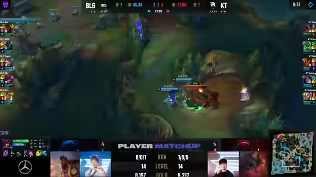 08:28:24Die ersten fünf Minuten verlaufen ohne Kills. KT Rolster sichert sich den ersten Herold, während BLG versucht, den Midlaner zu entlasten. Es kommt zu einem Flash-Play von Lehan, um einen Kill zu verhindern. Aiming erzielt das First Blood für KT Rolster, was den ersten Goldlead von 1000 bedeutet. BLG versucht, den Vorteil von KT zu kontern, aber Kassadin von KT geht zunehmend in Richtung Bot-Side. Es kommt zu einem Teamfight, aus dem BLG besser hervorgeht, während Kien weiterhin Toplane splitpusht. Das Spiel bleibt ausgeglichen, mit einer leichten Tendenz zu KT. Es kommt zu einem Kill von Lehan, der eine gute Koordination mit Kassadin zeigt. KT kann sich leicht nach vorne setzen und wichtige Platings sichern. Yagao ist zwar vorne, aber der Kill auf der Botlane macht das Ganze für KT rund.