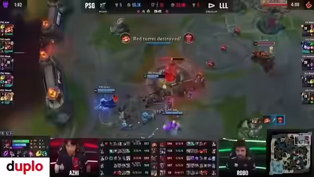 00:35:00Das erste Spiel neigt sich dem Ende zu und PSG stellt den Sieg sicher. Die Caster fassen zusammen, dass PSG mit ihrem aggressiven Draft und den frühen Engagements die Kontrolle über das Spiel erhielt. Laut konnte aufgrund ihrer skalierenden Picks kaum ins Spiel finden und verliert den ersten Map. Der Fokus liegt auf der beeindruckenden Leistung von Robo, der mehrere Kills für sich verbuchen konnte. Gleichzeitig wird der Fokus auf die anstehenden Spiele des Tages gerichtet.