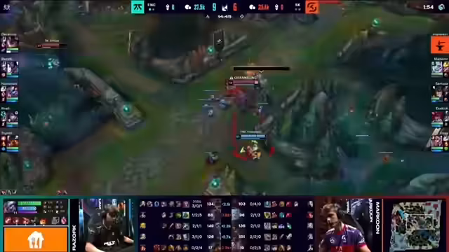 01:25:19Fnatic dominiert weiterhin das Spiel, angefangen mit Razorks starkem Jungle-Spiel, das Makun unter Druck setzt und der Botlane von SK die Freiheit nimmt. Doss' Roaming-Entscheidungen zahlen sich nicht aus, was Fnatic erlaubt, ins Drake-Stacking zu kommen und eine frühe Soul zu sichern. Fnatic hat die Freiheit zu wählen, wann und worum sie kämpfen wollen, was ihnen eine lukrative Ausgangsposition verschafft. Irrelevant bleibt auf Jax gefährlich, sichert sich aber den Topside-Turret. Fnatic findet immer wieder Catches, was zu einem Goldvorteil von 6.000 führt. Rezog sucht weiterhin nach Möglichkeiten für Engages. Fnatic übt Druck auf die Türme aus und bereitet sich darauf vor, das Spiel zu beenden. SK muss auf Fehler von Fnatic hoffen, da sie das Spiel nicht mehr selbst in der Hand haben. Fnatic kontrolliert die Map sicher und gibt den zweiten Harrod bewusst ab, um mehr herauszuholen. SK kann nur noch zuschauen, wie Fnatic die Mitte einreißt.