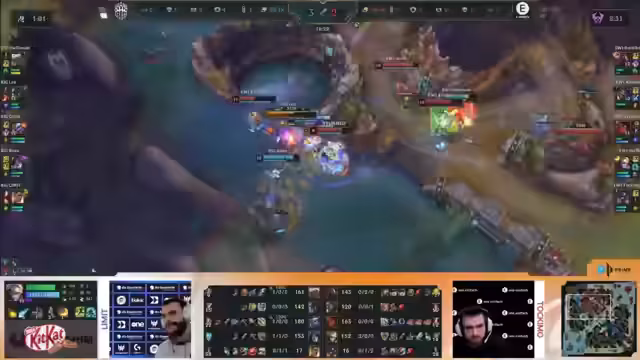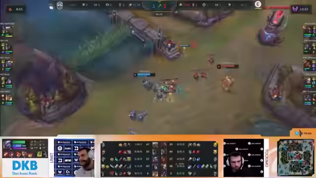 01:55:30EWI befindet sich in einer schlechteren Position für den Drake, da sie keine Prime mehr im River haben. Sie müssen sich damit abfinden, den Drake nicht zu contesten. Rocklo kassiert oben Prügel, aber Schelfmeck wird wohl kaum sterben. Zwei solche Trades sind für EWI unangenehm. Relative verkauft seine Ruby Crystals, um den Rod of Ages früher bauen zu können, was ihn jedoch kurzfristig schwächt. Die Worldcrops werden contested, wobei sich EWI einen sichern kann. BIG sichert sich den vierten Worldcrop, was jedoch keine großen Auswirkungen hat. Mittlerweile ist Eclipse im Spiel, und der Mau-Kai-Build von Apoboy sieht ungewöhnlich aus. Jungle ohne Schuhe zu spielen wird als unangenehm empfunden. BIG liegt weiterhin im Gold vorne, zeigt aber eine Tendenz, ihre Mid-Game-Leads zu verspielen. Statistisch gesehen hat EWI im zweiten Spiel bessere Chancen zu gewinnen. Der Herald ist ein gefährliches Objektiv, da seine Einnahme lange dauert und zu Fights führen kann. BIG gewinnt einen Teamfight um den Herald und zieht davon, ähnlich wie im ersten Spiel. EWI geht vorsichtig vor, da Shave Mate für einen Teamfight bereit ist, Rockler aber nicht in den Fight kommt.