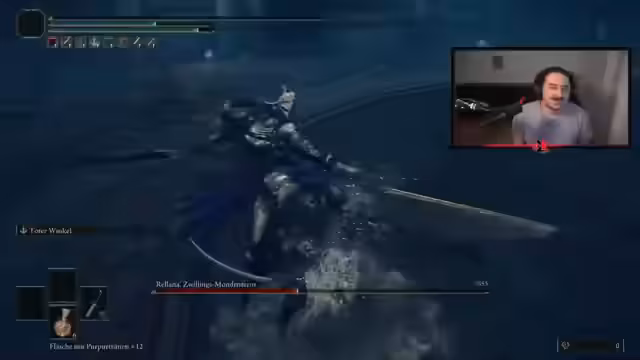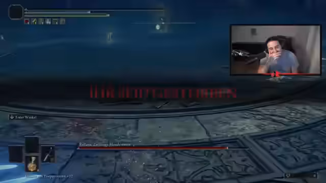 00:02:24Der Streamer kämpft gegen den Boss Radan, mit dem er Schwierigkeiten hat, ihn in seinem zweiten Durchlauf zu besiegen. Er ärgert sich über die Todesmechaniken, die er als lächerlich und unrealistisch empfindet, insbesondere der Tod aus geringer Höhe. Während des Kampfes bemerkt er einen geringen Schaden, was ihn frustriert. Nach dem Kampf stellt er fest, dass er den Untergrund noch nicht freigeschaltet hat und sucht nach einem Portal, das er aber nicht findet. Seine Unzufriedenheit wächst, da ihm der Weg in die neue Spiel DLC-Inhalt unklar ist.
