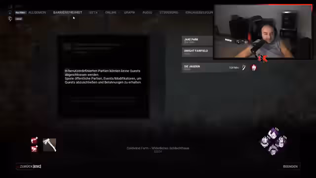 00:12:00Die erste Spielrunde beginnt, und der Streamer versucht, seine Gegner einzuladen und die besten Perks für den Jäger auszuwählen, wobei er Schwierigkeiten hat, die Namen der Perks zu finden. Er droht seinen Gegnern, sie zum Weinen zu bringen und sie 'abzustechen'. Trotz der anfänglichen Schwierigkeiten, Spieler einzuladen und die Einstellungen anzupassen, startet er ein 'Custom Game', um seine 'Feinde' zu 'ficken'. Während des Spiels beklagt er sich über starke Lags und die schlechte Grafik seines PCs. Er versucht, die Grafikeinstellungen anzupassen, um die Performance zu verbessern, bleibt aber frustriert über die anhaltenden Probleme. Die Map wird ebenfalls als 'scheiße' und 'verbuggt' bezeichnet. Trotz der technischen Schwierigkeiten gelingt es ihm, einige Gegner zu besiegen und sie 'zur Besinnung zu bringen'.