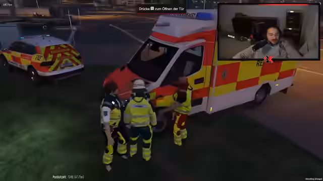 01:11:50Nach medizinischen Erstmaßnahmen organisiert der Streamer den Transport eines Patienten ins Krankenhaus. Es entstehen Diskussionen über die korrekte Zuweisung von Ressourcen (Krankenwagen, Notarztwagen) und die Bezahlung medizinischer Leistungen im Spiel. Der Streamer fordert Zahlungen in Höhe von 10.000 Spielgeld ein und argumentiert über die Wichtigkeit finanzieller Transaktionen innerhalb des Rollenspiels. Die Szene zeigt Konflikte bei der Aufgabenverteilung zwischen den Rollenspiel-Rollen und endet mit der Abfahrt zum Krankenhaus.