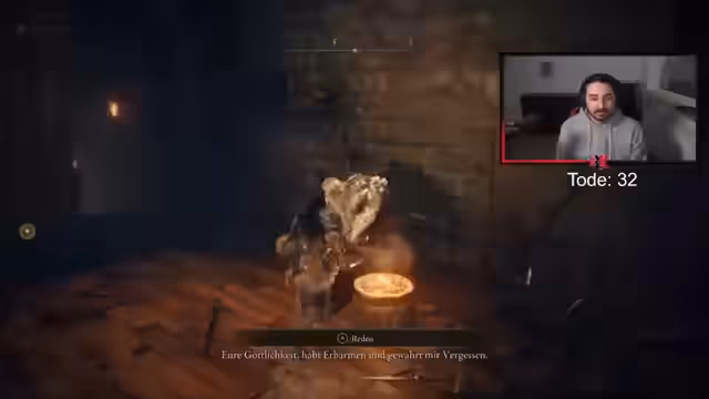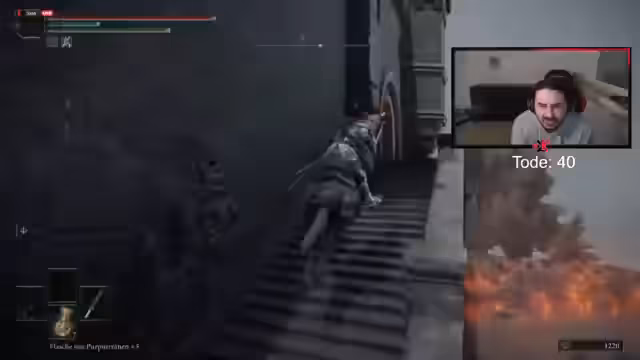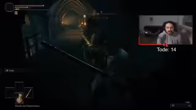11:38:53Der Streamer konfrontiert mehrere Boss-Gegner wie 'Reiter' und 'Drache'. Bei diesen Kämpfen werden Taktiken erörtert, beispielsweise das konsequente Ausweichen durch Rollen anstatt des Parierens, um Schaden zu vermeiden. Auch die Nutzung von Items wie 'Gnade' für schnelle Reisen wird erwähnt. Es wird deutlich, dass der Kampf gegen bestimmte Gegner wie der 'Reiter', der den Spieler blockt, Geduld erfordert, um seinen Angriffsmuster zu erkennen und entsprechend zu agieren.