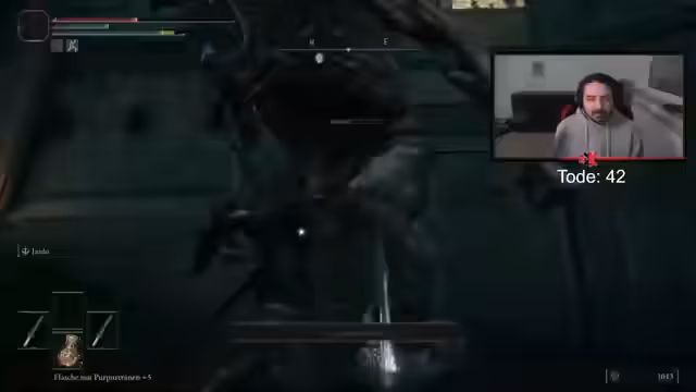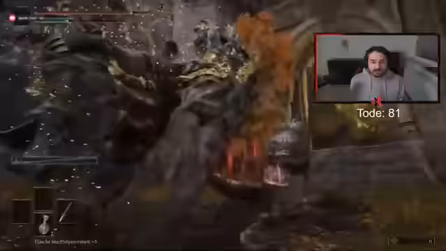 13:30:21Aufgrund der Schwierigkeiten im Kampf analysiert der Streamer verschiedene Spielmechaniken. Er stellt fest, dass die Rüstung die Ausdauer und die Fähigkeit zum Rollen negativ beeinflusst, und zieht Teile der Rüstung aus, um die Beweglichkeit zu erhöhen. Es wird auch die Mechanik der 'Haltung' (Stagger) des Gegners besprochen und festgestellt, dass nach dem Einsatz bestimmter Fähigkeiten (L2) eine kurzeAnimationspause folgt, in der nicht gerollt werden kann, was zu kritischen Situationen führen kann.