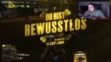 04:53:04Der Streamer wird im Spiel als Penner bezeichnet und aufgefordert, sich zu entfernen. Er zeigt wenig Reaktion auf die Anweisung, woraufhin er verhaftet wird. Die Szene endet abrupt und der Streamer scheint die Session zu verlassen. Die letzten Szenen sind kurz und unklar, da die Befehle nicht befolgt werden. Es wird eine Verwarnung ausgesprochen, aber die Situation eskaliert nicht weiter. Der Streamer verlässt den Server oder wird ausgeschieden, was das Ende der gezeigten Spielhandlung markiert.