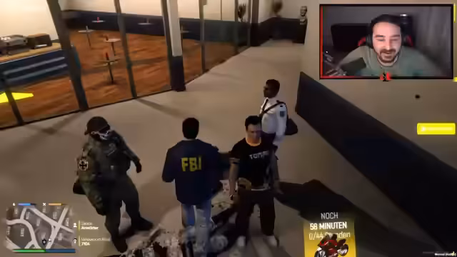 04:13:29Der Streamer meldet sich als FBI-Agent im Rollenspiel an und interagiert mit anderen Spielern. Seine Mission ist es, einen Spieler zu rächen, der ihn zuvor erschossen hat. Er bittet um Hilfe bei der Ermordung und fordert Waffen und Unterstützung ein. Er nennt ein Teammitteil und möchte gemeinsam vorgehen, wobei er immer wieder den Namen 'Samo' erwähnt. Die Situation ist chaotisch, da er keine Waffen und keinen Spawnschutz hat, was die Mission erschwert. Er fordert Unterstützung vom Support und sucht nach Verbündeten.