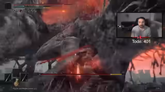 04:23:16Nach einem langen und intensiven Kampf gelingt es dem Streamer schließlich, den Boss zu besiegen. Er zeigt Erleichterung und Freude über den Erfolg, nachdem er so viele Versuche unternommen hat. Der Sieg markiert das Ende des aktuellen Gameplays und den Abschluss des Stream-Teils. Der Streamer blickt auf die gesammelten Erfahrungen zurück und ist gespannt, was als Nächstes im Spiel oder in zukünftigen Streams erwartet.