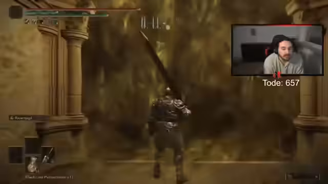 03:39:45Der Streamer konzentriert sich auf das Gameplay eines actionreichen Rollenspiels, speziell auf einen Bosskampf. Es geht um die richtige Anwendung von Haltungen, um die Stärke des Gegners zu brechen. Dabei wird die R2-Taste mit bestimmten Waffen geladen, um maximalen Schaden zu erzielen. Die Attacken des Bosses sind schwer zu timen und erfordern präzises Ausweichen, um Haltungsschaden zu vermeiden. Der Streamer betont, dass es viel Übung erfordert, um die Attacken des Bosses zu meistern und seine Strategie anzupassen.