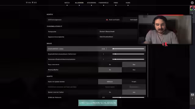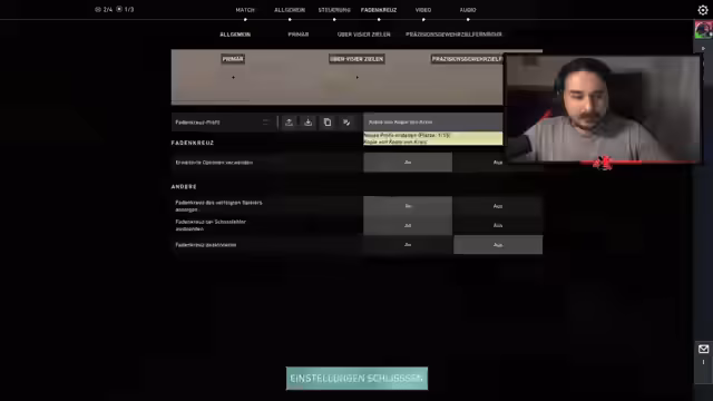 07:27:00Ein signifikanter Teil des Streams widmet sich der Feinjustierung der Crosshair-Einstellungen im Spiel. Der Streamer experimentiert intensiv mit verschiedenen Spreizungen, vergleicht eine kreuzförmige (Kreuz) und eine punktuelle (Kreis) Anzeige sowie unterschiedliche Empfindlichkeitsstufen zwischen 0,2 und 0,4. Das Ziel ist, die präziseste und effektivste Konfiguration zu finden, um seine Zielfähigkeiten zu verbessern, insbesondere auf Distanz.