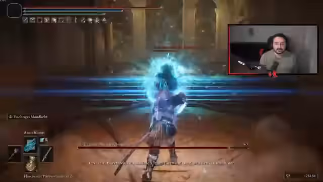 01:51:53Es wird über verschiedene Gameplay-Strategien in Elden Ring diskutiert, darunter eine "Geizmethode" für Noobs, die das Spammen von L2 und ein bisschen Kraft beinhaltet. Der Fokus liegt auf dem Besiegen von Bossen, wobei die Möglichkeit erwähnt wird, dass zukünftige Bosse sehr schwierig werden könnten. Insbesondere wird Marlenia erwähnt, bei der man wahrscheinlich einige Stunden brauchen wird. Es wird auch über Magie gesprochen, einschließlich Buffs und Medallions, die verwendet werden können, um Bosse mit Donnerstrahl zu one-shotten. Es folgt eine Tirade über den Schwierigkeitsgrad des Spiels. Es wird die Notwendigkeit betont, Godfrey, den Goldenen, zu besiegen, und es wird vermutet, dass dies einfach sein wird, da er ein Nahkämpfer ist. Es wird auch überlegt, den Feuerriesen zu erledigen, wobei die Möglichkeit besteht, dass dies einfach sein wird, da man seine Hände treffen kann. Es wird die Frage aufgeworfen, wie man ins Schneegebiet gelangt, und es wird überlegt, ob man etwas einsammeln muss, um Marlenia zu machen. Es wird auch überlegt, ob man den Fahrstuhl in der Hauptstadt benutzen muss, um dorthin zu gelangen. Es wird die Schwierigkeit des Spiels beklagt, insbesondere die Tatsache, dass man ständig stirbt und keine Ahnung hat, was man tun soll. Es wird auch die Tatsache beklagt, dass die Strahlen der Gegner so stark sind und dass das Spiel so gemacht ist, dass die Leute ausrasten. Es wird die Tatsache beklagt, dass man sich hinsetzen muss, um Getränke zu trinken, und dass das Pferd so langsam ist. Es wird die Tatsache beklagt, dass die Hände der Gegner so ekelhaft sind. Es wird die Tatsache beklagt, dass man immer so lange reiten muss.