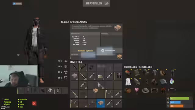 04:12:21Die Streamer diskutieren über verschiedene Spielstile und strategische Entscheidungen. Ein Spieler berichtet über einen erfolgreichen Raubzug, bei dem er viel Loot erbeutet hat. Gleichzeitig werden Ressourcen wie Sulfur und Charcoal verwaltet. Ein Spieler schlägt vor, eine kleine Runde Mario Kart zu spielen, um sich von den Kämpfen zu erholen.