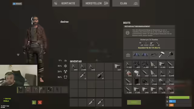 00:00:00Zu Beginn des Streams konzentriert sich der Streamer auf das Sammeln von Ressourcen und das Finden von Ausrüstung im Spiel. Er sucht gezielt nach Loot wie Blutsorger, Krokodilen und anderen wertvollen Gegenständen, die seine Überlebenschancen verbessern. Parallel dazu erkundet er verschiedene Gebiete wie Kursburg und den Airfield-Tower, während er mit seinem Team koordiniert, um Ressourcen wie Metall, Stoff und Holz effizient zu farmen und seine Basis auszubauen.