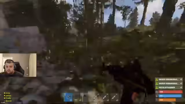 00:36:02Der Streamer wird getötet und verliert seine gesamte Ausrüstung und Materialien. Er ist frustriert, da er nicht bauen kann, ohne getroffen zu werden. Er erkennt, dass ihn jemand während des Bauens angegriffen haben muss. Sein Team versucht, ihn zu unterstützen, aber sie werden ebenfalls angegriffen. Der Streamer stellt fest, dass die Feinde mit Waffen wie M39 und Tommy ausgestattet sind und sie in eine schwierige Situation bringen.