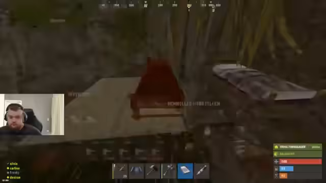 01:31:53Das Team überfällt eine gegnerische Basis und erbeutet viele Ressourcen, including Werkbänke und Schlafsäcke. Sie sind beeindruckt von der Anordnung der Fallen in der Basis. Ein Spieler aus Russland tritt auf, und es kommt zu verbalen Auseinandersetzungen. Das Team sortiert ihre Beute und plant, die Basis zu organisieren. Sie bemerken auch, dass einige Ressourcen knapp sind und sie sich um diese kümmern müssen.