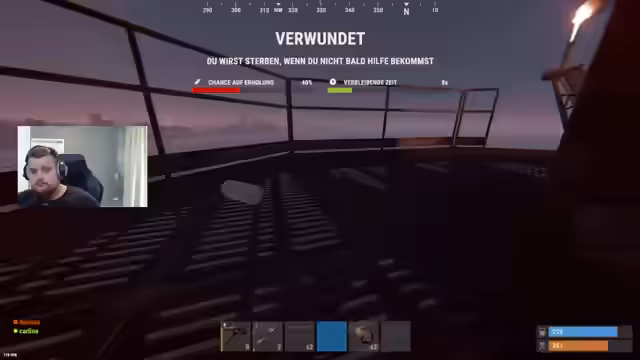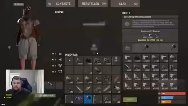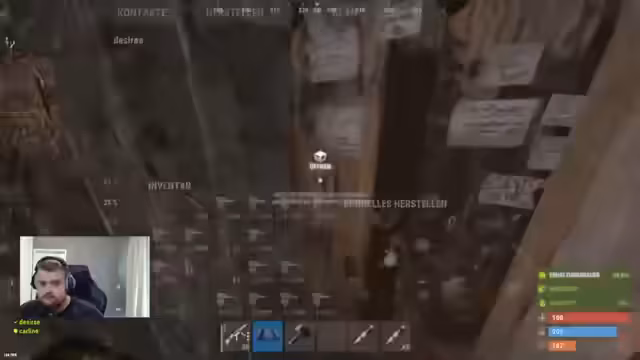 03:21:38Der Fokus liegt wieder stark auf dem Gameplay. Der Streamer und sein Mitspieler 'Reng' planen den Bau einer großen Basis, diskutieren über Seiteneingänge und Materialmanagement wie HQM und Holz. Es kommt zu Streitigkeiten über den Baustil und die Ressourcennutzung. Anschließend versuchen sie, einen Gegner namens 'Pinguin' im U-Bahn-Tunnel zu jagen, was in hektischen Kämpfen endet, bei denen der Streamer oft stirbt und sich über seine Mitspieler ärgert.