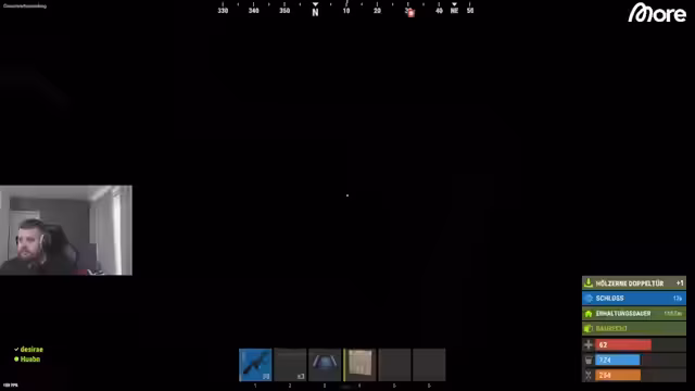 03:01:40Die Spieler planen einen Raid auf einen HQM-Bunker, wobei sie über den benötigten Sprengstoff (C4, Rockets) und die Struktur des Bunkers diskutieren. Sie analysieren mögliche Schwachstellen wie Softside-Wände und die Position des Lootrooms. Nach mehreren gescheiterten Versuchen gelingt es schließlich, die TC (Tool Cupboard) zu zerstören und den Bunker zu übernehmen.