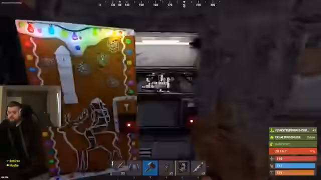 02:59:24Ein Höhepunkt des Streams war die Entdeckung einer mutmaßlichen Hackerbase, die voller wertvoller Items wie Waffen, PvP-Loot und überfüllten Stashkisten war. Die Base wurde als ineffizient gebaut beschrieben, enthielt aber große Mengen an Ressourcen wie 19 Diesel, 4.000 Scrap, Kameras und Laptops. Die Streamer nutzten eine Ramme, um Zugang zu erhalten, und betonten die Seltenheit solcher Funde. Die Diskussion mündete in die Kritik an der Übermacht von Rammen im aktuellen Spielmetas.