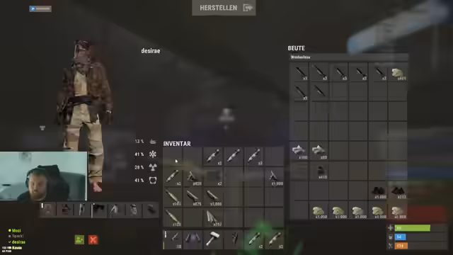 00:25:11Die Aktionen erfordern eine stärkere Koordination innerhalb des Teams. Es wird über die Aufteilung von Aufgaben gesprochen, wobei ein Teammitglied zur Ressourcensammlung und ein anderer zum direkten Angriff auf eine benachbarte Base auserwählt wird. Die Vorbereitungen umfassen das Craften von Sprengladungen und das Sammeln von ausreichend Munition und Ausrüstung, um den bevorstehenden Überfall erfolgreich zu gestalten.
