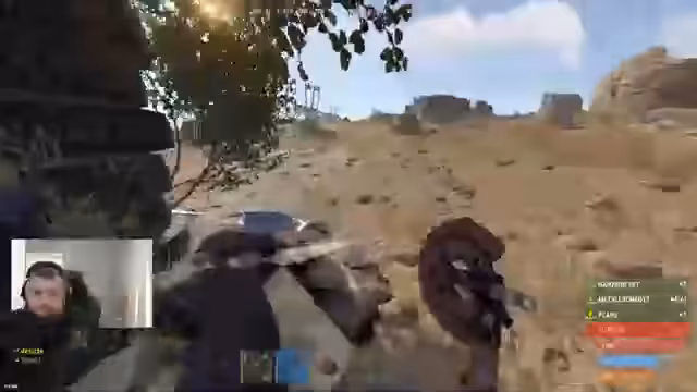 05:45:03Ein anderer Spieler namens Jackie taucht auf und der Streamer zeigt sich begeistert. Er beschreibt Jackie als 'fucking Liebe' und macht sich über seinen überladenen Inventar lustig, als dieser wiederholt versucht, Holz zu farmen. Gemeinsam gehen sie auf eine Jagd nach Spielern, um deren Ausrüstung zu erbeuten. Es werden Raids gegen gegnerische Bases geplant und ausgeführt. Der Streamer beschreibt die Eindrücke von einer großen Raid Base mit vielen Geschütztürmen und drückt Skepsis über die Verteidigungschancen aus, falls eine große Feindeinheit angreifen sollte.