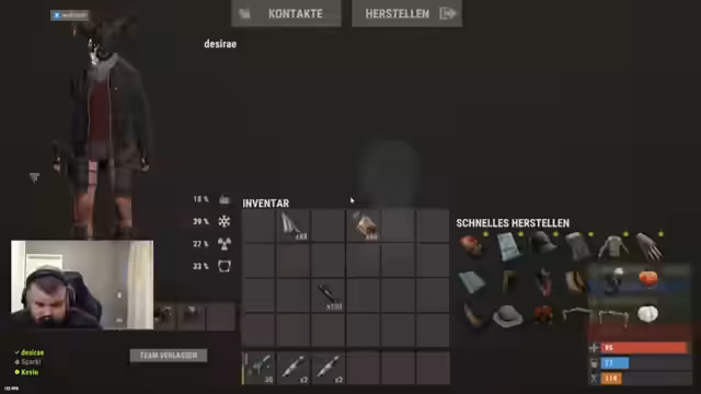 07:55:28Der Stream konzentriert sich intensiv auf das Spiel Rust. Der Fokus liegt auf der Ressourcenproduktion, insbesondere dem Farmen von Gunpowder, da 1000 Einheiten benötigt werden. Auch Sulfur wird als knappe Ressource erwähnt, während Holz als unattraktiv angesehen wird. Es gibt Erwähnungen von Waffen wie der Thompson und der MP5, die ergetzt werden. Der Streamer unterhält sich auch über strategische Aspekte des Spiels, wie das Anlegen von Spikes und die Notwendigkeit, mehr elektrische Öfen zu craften.