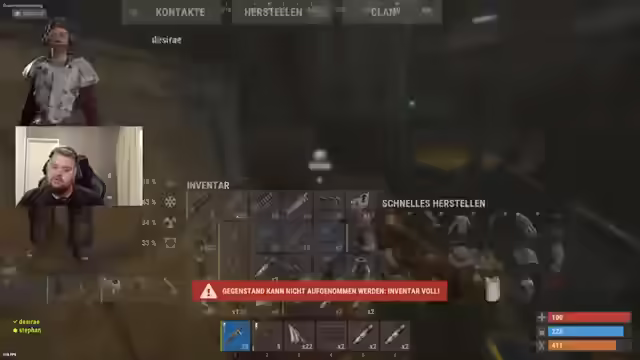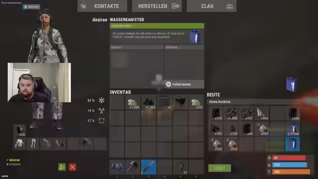 02:39:05Nach weiteren Verlusten herrscht Frustration über die Spielsituation. Die Spieler müssen Waffen craften, darunter eine Thompson, und stellen fest, dass sie gegen eine zahlenmäßig überlegene Gruppe von etwa zehn Spielern antreten. Die Gegner werden als 'geisterkrank' und 'krank' bezeichnet, da sie mit so vielen Leuten auf einem Weekly-Server spielen. Ein Spieler beklagt, dass er eine Dreier-Werkbank benötigt, um eine AK herzustellen. Die Suche nach 'Charco-Rockel' (Holzkohle) wird erwähnt, und es wird festgestellt, dass diese Art von Servern oft von 'Noob-Serks' frequentiert werden, die auf Weekly-Servern spielen, weil sie auf Main-Servern keine Chance haben. Die Spieler sind im 'Bruch' (Pleite) und fühlen sich von den Gegnern 'totgelootet'. Die Stimmung ist angespannt, und es wird überlegt, wie man aus der misslichen Lage entkommen kann.