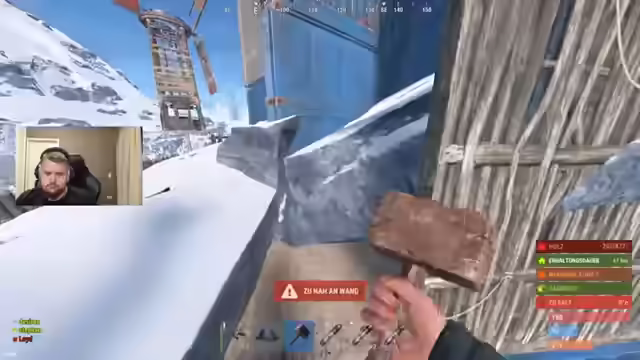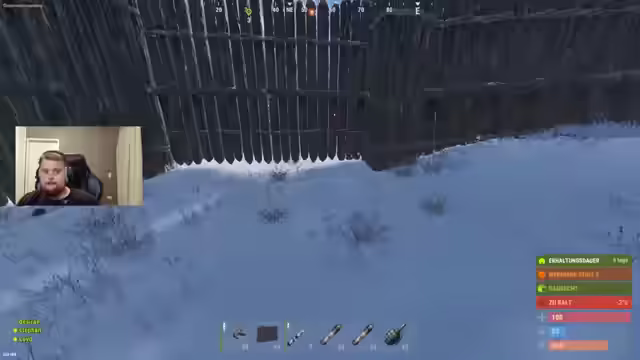 01:48:11Die 'Fullkits' (voll ausgerüstete Spieler) sind wieder auf dem Berg und laufen in Richtung der eigenen Basis, was auf einen bevorstehenden Angriff hindeutet. Es wird Frustration über die 'ignoranten' Gegner geäußert, die trotz Beschuss einfach weiterlaufen. Ein Nachbar wird als 'Vollidiot' bezeichnet, da er scheinbar wahllos schießt. Es wird berichtet, dass die 'Türken-Nachbarn', die zuvor dominiert wurden, bereits über 50 Raketen eingesetzt haben. Die Sorge vor einem Raid wächst, insbesondere da der Streamer viel 'Roofcampen' betreibt, was die Gegner provozieren könnte. Es wird die Möglichkeit in Betracht gezogen, mit den Gegnern zu reden und RP zu versuchen, um die Situation zu entschärfen. Die Nachbarn haben über Nacht eine komplett neue Basis gebaut, was auf ihre Aktivität und Stärke hindeutet. Die Beschaffung einer 'Red Card' und das Pinkeln werden als wichtige nächste Schritte im Spiel genannt.