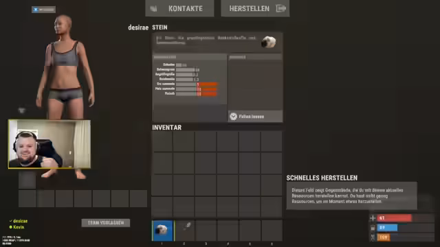 04:30:52Der Stream beginnt mit grundlegenden Fragen zur Steuerung und Interaktion im Spiel. Ein Spieler fragt, wie man Steine aufhebt, wobei die Taste E als Standard bestätigt wird. Es werden Probleme mit der Zensur und der Darstellung von Spielern ohne Kleidung diskutiert, was den Streamer dazu veranlasst, die Zensur einzuschalten. Anschließend wird die Teamerstellung erklärt: Man muss per Tab ein Team erstellen und mit der Taste E andere Spieler in die Gruppe einladen. Das Team ist essenziell, um sich gegenseitig zu helfen und Ressourcen zu teilen.