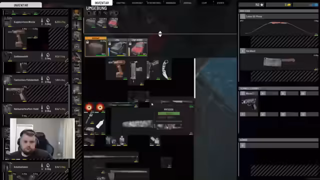 01:36:11Nach einem Todesfall wird der Loot des Gefallenen gesammelt. Es werden Gegenstände wie Leuchtfackeln und ein improvisierter Rucksack gefunden. Der Streamer stellt fest, dass Serverwissen wichtig ist, und erwähnt die Existenz von Metaspielern. Es werden Gegenstände wie Gilly-Hosen entdeckt, die nicht transportiert werden können, weil sie bereits Inhalt haben. Der Fokus liegt auf dem Management des Inventars, um Platz für wichtige Waffen wie ein Hackebeil zu schaffen.