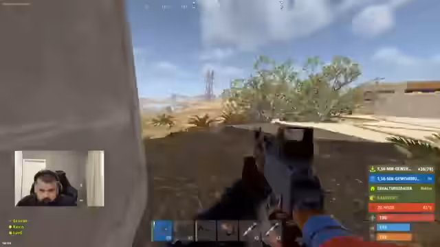 Ein neues Team betritt einen besetzten Rust-Server und wird schnell in konfliktreiche Auseinandersetzungen verwickelt. Nach Eintritt in eine Basis wird ein Gegner mit Helikopter gesichtet, was zu einem hektischen Tausch von Schüssen führt. Das Team versucht, strategisch Looten zu sichern, während es mit der unübersichtlichen Karte und der Präsenz rivalisierender Spieler konfrontiert ist.