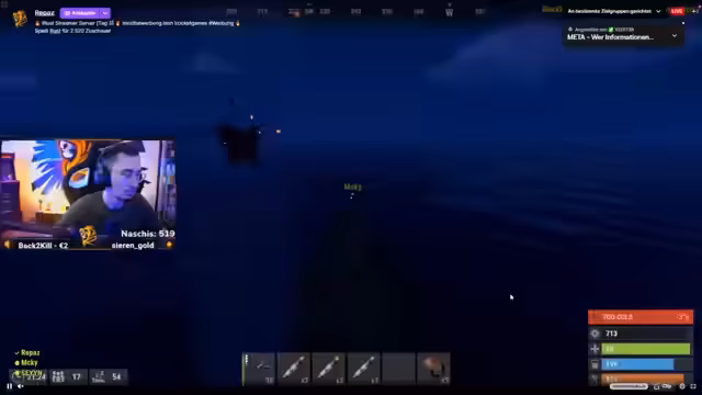 12:02:26Die Notwendigkeit einer Sekundärbasis im Norden wird diskutiert, um einen Respawn-Punkt zu haben. Es wird überlegt, ein Tuckboot zu holen, und gefragt, ob Romatra am Wasser gelootet wurde. Ein Boot wird gesichtet und die Strategie 'Looten und Scooten' vorgeschlagen. Reeps äußert den Wunsch, wegzukommen, da er sich fett fühlt, aber nur einen holen kann. Micky wird als AFK und Bastard bezeichnet. Es wird die Notwendigkeit betont, zu zweit in ein Boot zu gehen. Es wird spekuliert, dass jemand über die Mitte über die Schleuse gegangen ist und die Idee aufgebracht, die Schleuse abzukippen. Tapsi äußert Frustration und verlässt das Spiel, da er keine Lust mehr hat und das Abcampen unnötig findet. Es wird vermutet, dass Chef von seinem Team verkauft wurde, da er mit Trimix Romata teamt und nun von seinem Team erschossen wird.
