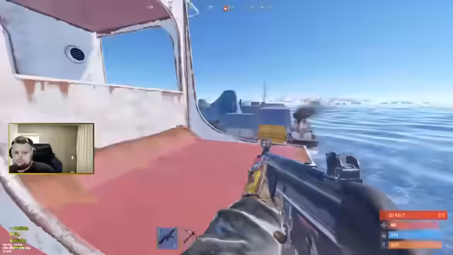 01:26:57Der Streamer und sein Team verteidigen ihre Basis gegen Angreifer. Es kommt zu einem intensiven Feuergefecht, bei dem mehrere Gegner ausgeschaltet werden. Der Streamer diskutiert mit seinem Team über die Strategie, wie sie das Öl am besten sichern können. Es wird überlegt, ob die Gegner noch einmal angreifen werden. Der Streamer äußert sich frustriert über Projektil-Invalides und stirbt durch Cargo auf Öl. Er kritisiert die Anordnung der Häfen auf der Karte und erklärt, dass diese immer nebeneinander liegen. Der Streamer wundert sich darüber, wie voll seine Kisten mit Ohr sind. Er und sein Team beobachten, wie sich drei Gegner ihrem Boot nähern und auf Öl zusteuern.
