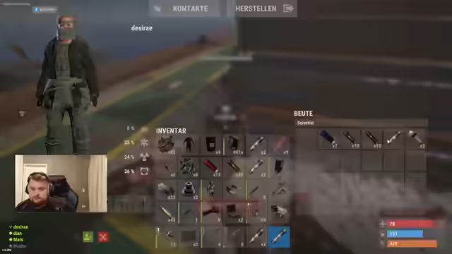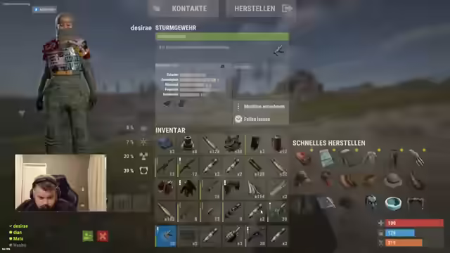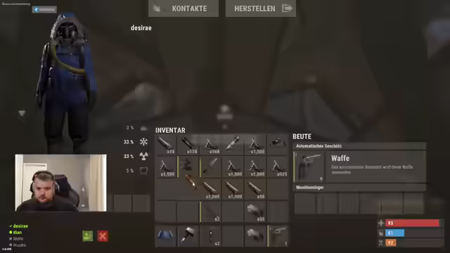04:22:06Es wird über einen Spieler diskutiert, der in kurzer Zeit eine hohe Anzahl an Kills erzielt hat und dessen Account verdächtig erscheint, aber nicht gebannt wird. Es wird die Frage aufgeworfen, wie dies möglich ist und dass der Spieler scheinbar über 20 Stunden am Tag spielt. Trotzdem wird das eigene PvP-Spiel gelobt. Es wird festgestellt, dass auf Öl wenig los ist und die einzigen Öl-Spieler scheinbar die Streamer sind. Es wird die Anzahl der eigenen Kills und Tode verglichen. Es wird der schlechte Start auf dem Server bemängelt, da keine gute Öl-Quelle, Green Card oder Boot gefunden wurde. Abschließend wird ein Minicopter gesichtet und vermutet, dass dieser an der Küste auf die Streamer wartet.