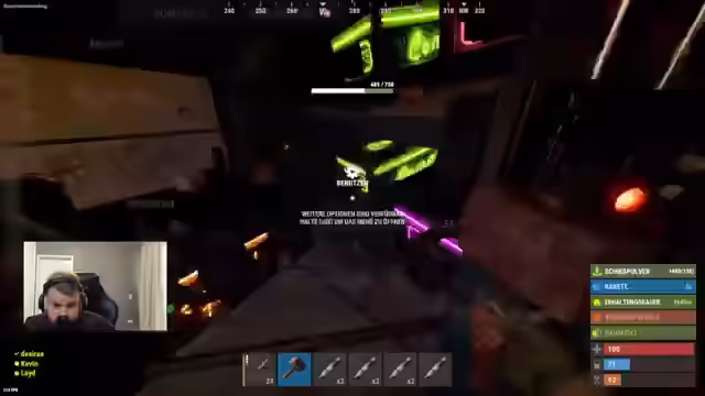 00:25:23Der Streamer entdeckt einen Spieler vom Heli und liefert sich ein Gefecht. Er bemerkt, dass er 700 Scrib hat und sich kurz etwas zu trinken holen will. Der Streamer kündigt an, dass der Server heute rasiert wird, merkt aber an, dass er vergessen hat, den Titel des Streams zu ändern und noch den Titel von gestern hat. Es wird über das Farmen von Holz gesprochen und der Streamer erklärt, dass er einen Holz-Tee hat, der den Ertrag erhöht. Ein Minicopter verfolgt die Gruppe und der Streamer versucht, ihn mit einer schlechten Waffe zu locken. Es wird überlegt, wer Sprengstoff in der Base platziert hat. Der Streamer äußert den Wunsch nach einem Steinkompound und fragt nach dem Preis für einen Desert Raider Skin. Es wird über die teuren Preise von Streamer-Equipment diskutiert und die Frage aufgeworfen, ob die Nachbarn ausgebaut haben. Der Streamer entdeckt einen Gegner in der Ferne und wird beschossen. Es kommt zu einem Kampf, bei dem der Streamer und seine Gruppe sterben.