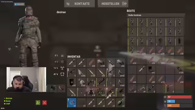 00:00:24Der Stream startet mit dem Beginn des neuen Servers. Zunächst begrüßt der Streamer die Zuschauer und erkundet die Umgebung. Dabei entdeckt er einen Farmer und liefert sich ein erstes Gefecht. Es wird über die Basen der Spieler gesprochen und festgestellt, dass einige bereits gut ausgebaut sind. Der Streamer äußert den Wunsch nach einem Heli und bedankt sich für die Unterstützung der Zuschauer. Pünktlichkeit wird gefordert, anstatt das Spiel zu spielen. Es wird über das eigene Leid geklagt und der Kauf von Red Bull an einer Tankstelle thematisiert, da der Rewe zu weit entfernt gewesen wäre. Der Streamer gibt an, erst drei Stunden geschlafen zu haben und thematisiert seinen allgemeinen Gesundheitszustand, wobei er Tee mit Honig als Mittel gegen die Beschwerden erwähnt. Es wird über das Ausbleiben von ORT-Drops im Spiel diskutiert und die Funktionsweise von Streamer-Skins erklärt. Der Streamer äußert seinen Frust über das Spiel, da er keine ORT- oder Holz-Tees findet und kündigt an, sich etwas zu trinken zu holen, um Kopfschmerzen vorzubeugen. Abschließend wird über Morgenmuffel gesprochen und ein Spieler wird aufgefordert, seine Klamotten zurückzugeben.