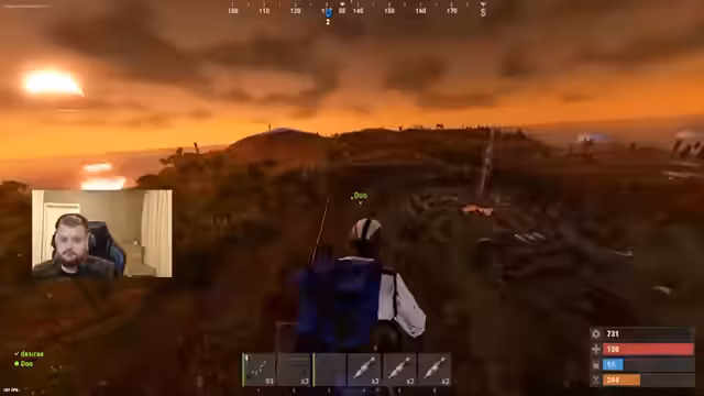 05:32:12Ein geplanter Raid auf eine gegnerische Basis beginnt vielversprechend. Die Gegner werden durch einen C4-Angriff überrascht und ausgeschaltet. Beim Plündern der fallen gelassenen Ausrüstung stirbt der Streamer jedoch durch eine unglückliche Selbstexplosion mit einer Rakete. Dieses Pech führt zu frustrierten Kommentaren über die eigene Ungeschicklichkeit und die Entscheidung, den Gegner zu trollen, anstatt fair zu kämpfen.