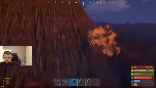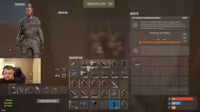 06:29:42Nach einem Tod wird der Streamer wiederbelebt und kehrt mit Lowgrade-Ausrüstung zurück. Er und sein Team looten Kisten und verlieren dabei Ausrüstung. Es gibt Misstrauen innerhalb des Teams, da jemand Metz mitgenommen haben soll. Der Streamer beschwert sich, dass eine gegnerische Basis zu viele Grub-Lücken hat, was das PvP unattraktiv mache. Es wird über Waffen wie Rockets und HVs diskutiert, um den Gegner zu bekämpfen.