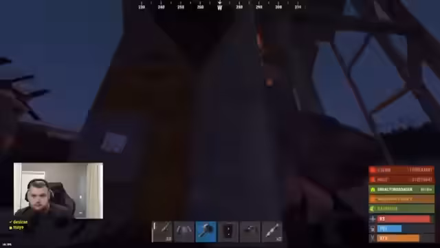 00:01:54Nach dem Streambeginn wechselt der Fokus auf das Spiel Rust. Der Streamer spawnet in einer suboptimalen Position mitten auf der Map, während andere Spieler bevorzugt spawnen. Er äußert Frustration über diese Startposition und seine Entscheidungen, die zu einem schnellen Tod führen könnten. Es folgen erste Bemerkungen über den Spielstil und die Ressourcensuche.