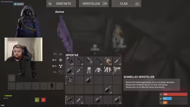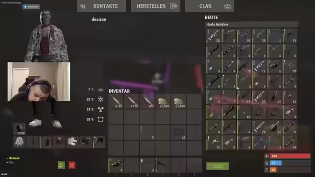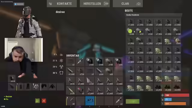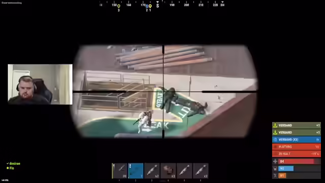 05:33:53Der Streamer hat das Bedürfnis, anderen Spielern Waffen zu geben und macht einen Vertrauenstest. Er lässt sich fallen und hofft, dass er aufgehoben wird. Der Streamer droppt Waffen und ist überfordert. Er möchte gerne sehen, wie die Reaktion ist, wenn jemand offline raided. Der Streamer möchte seine Base verbessern. Der Streamer riskiert was Rieskantes. Der Streamer wird von einem One-Shot getötet. Der Streamer stalkt einen Solospieler. Der Streamer glaubt, die Hacker gefunden zu haben. Es sind alles seine AKs. Der Streamer ist tot. Der Streamer findet viel Charcoal. Der Hacker hat alles gefarmt und gekillt. Der Streamer hat Karma bekommen, weil er kein Logitech reingelegt hat.