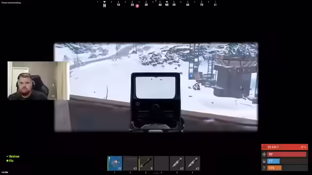 04:40:15Es wird weiterhin nach den Hackern gesucht. Der Streamer vermutet, dass sie in einem bestimmten Shop wohnen. Es wird überlegt, ob man zum Airdrop laufen soll. Der Streamer wird von einem Boltiturret getötet. Es wird überlegt, ob man mit einem Attack Heli die Turrets kaputt machen soll. Der Streamer spielt Solo und kann daher keine Turrets kaputt machen. Es wird überlegt, ob man die Windmühle landen und die Mini fast rasten soll. Der Streamer ist frustriert, dass er immer wieder stirbt. Es wird überlegt, ob die Hacker eine zweite Basis haben, da in der ersten Basis nicht viel Loot zu finden ist.