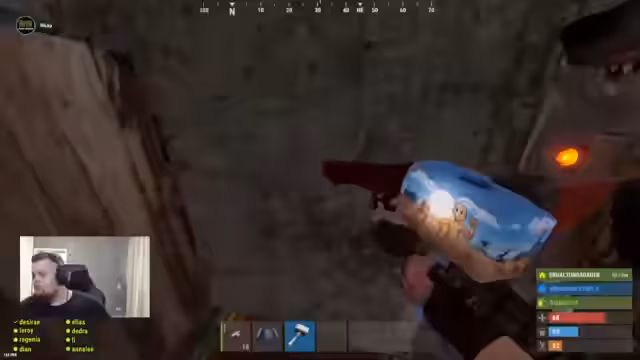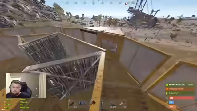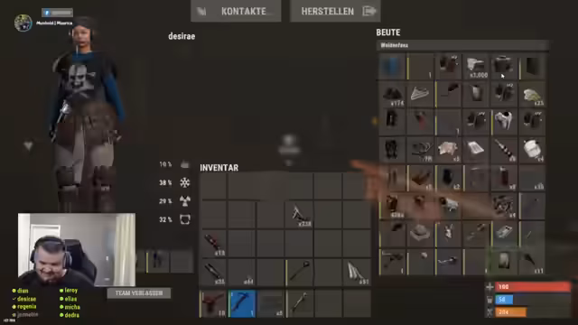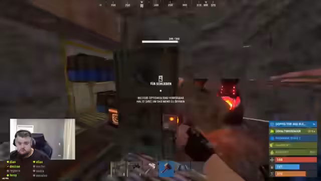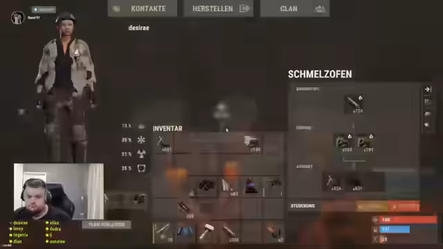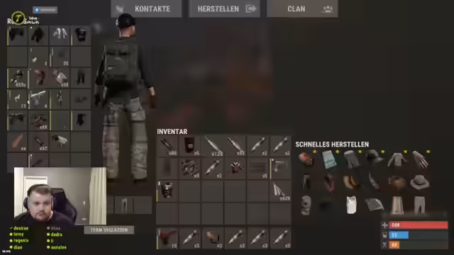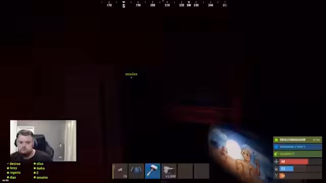 00:09:14Nach dem Start des Spiels kommt es zu ersten Konfrontationen und Rückschlägen. Der Streamer wird überraschend von einem Teammitglied getötet, was zu einem Teamkill führt. Obwohl er das Verhalten seines Mitspielers als unglücklich und voreilig bezeichnet, zeigt sich die Dynamik des Teams, bei dem auch technische Probleme wie Verbindungsabbrüche und der Receiving-Data-Bug auftreten. Die ersten Stunden sind geprägt vom Sammeln von Ressourcen wie Metall und dem Versuch, eine Basis aufzubauen.