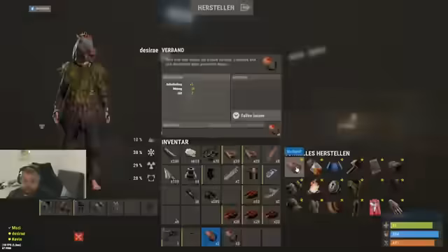 06:40:56Der Streamer befasst sich intensiv mit verschiedenen Spielmechaniken und strategischen Entscheidungen. Es geht um das Bauen von Basen, das Verwalten von Ressourcen wie Holz, Stein und Stoff, sowie das Ausrüsten mit Waffen wie Thompson, MP5 und Granaten. Der Spieler diskutiert über das Verhalten von Bots und Gegnern, lootet Gegenstände und versucht, eine effektive Strategie zum Überleben im Spiel zu entwickeln. Besonders wird das Thema des PvP (Player vs Player) und die Taktiken für den Kampf gegen andere Spieler beleuchtet.