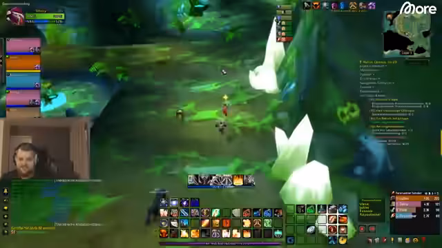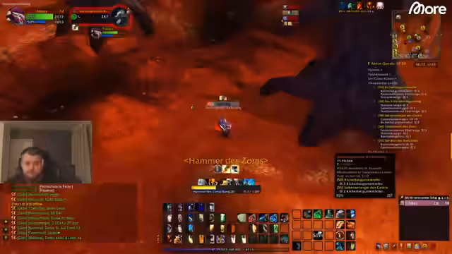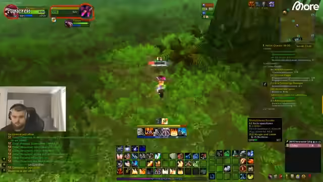 02:29:15Ein Kampf gegen einen Rare-Gegner beginnt, bei dem die Gruppe nach einem unkoordinierten Angriff in Bedrängnis gerät. Der Streamer ruft nachdrücklich dazu auf, zu laufen und sich zurückzuziehen, um der wütenden Masse zu entkommen. Ein Missverständnis bezüglich eines Hammers führt zu einer kurzen Verwirrung, die jedoch schnell geklärt wird. Die Gruppe muss sich nach einem großen Pull sammeln und der Streamer betont die Bedeutung von Teamwork und schnellen Reaktionen, um im Dungeon zu überleben.